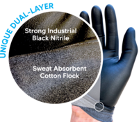 They feature a tough industrial resistant black nitrile outer, and a soft sweat absorbing flock lined inner to keep your hands cool and comfy while you work. Depending on the application that you are using them for X-GUARD can be used as a disposable and/or a reusable glove.